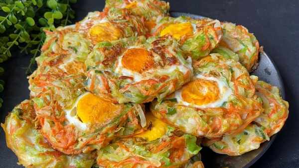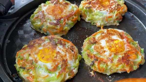 把小饼烙至两面金黄就熟了,出锅装入盘中,蔬菜饼就做好了,蔬菜营养丰富,非常好吃。