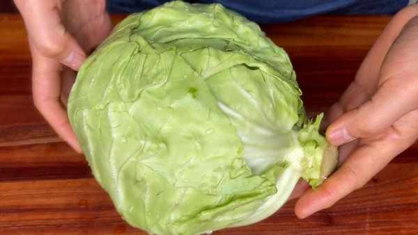 提前烧一锅水,加一勺盐,加几滴食用油,把包菜下锅焯一下水,焯水一分钟,控水捞出来。