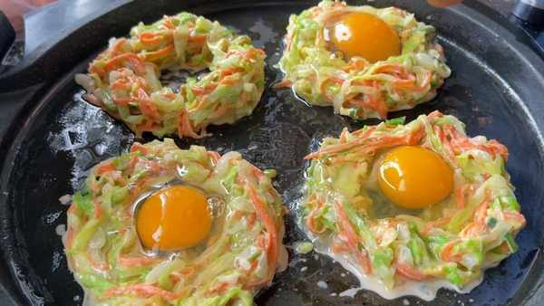 准备食材:包菜、胡萝卜、面粉、鸡蛋