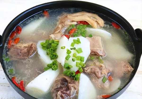 8、之后转大火加入把山药加入烧开后再转小火炖半小时。
