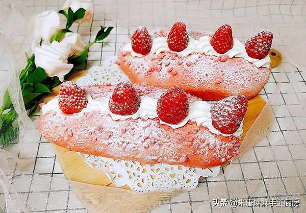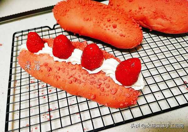 早就种草这款软欧了,一直没有动手去做。正好昨天买了草莓,赶紧督促自己安排上。款式仿奈雪的茶草莓魔法棒。