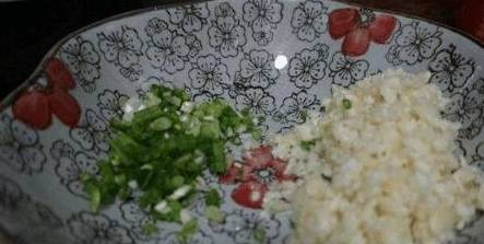 2、把蒜头拍成蒜末,切好葱花备用。准备两个小碗,一个碗里加酱油和少许辣椒,少许孜然粉,调好备用;另一个碗里加水和淀粉调成淀粉水备用。