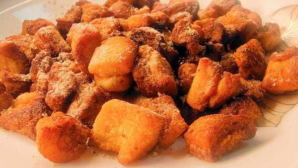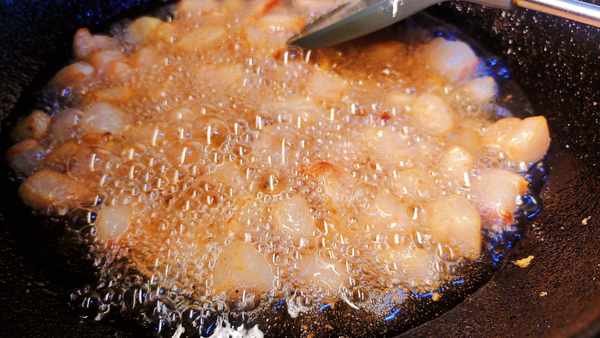 那一天我会特别乖,早早地做完作业,溜来厨房无事献殷勤,一会儿帮父亲递根柴火,一会儿跟母亲搭几句话,顺便帮着拿个碗递个勺,就像苍蝇粘在了粘纸上,哪里还赶得走?父母也是心知肚明,知道我意不在干活儿,也就微笑着默许了。我眼巴巴地守在锅边,看着白花花的板油慢慢挤尽身上所有的油分,再萎缩成一小团黄褐色的油渣。随着诱人的油香在屋里弥漫开来,我早已垂涎三尺、急不可耐。每到这时,母亲都会叫我走开点,免得被滚烫的猪油溅伤。