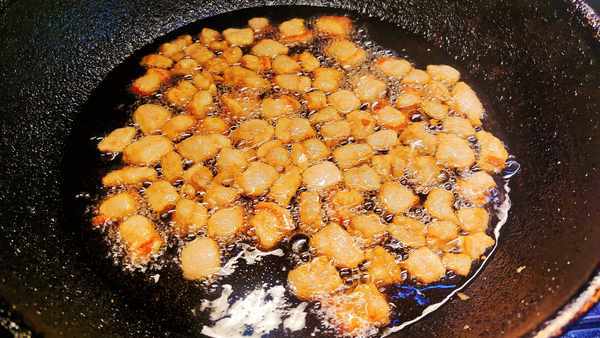 好不容易等到猪油出锅,母亲还要用锅铲把油渣压一压,以确保真的一点油都挤不出来了,才把油渣盛到我已捧热了的碗里。我忘记了刚刚的教训,来不及等母亲给我撒上盐,也顾不上她“别急,小心又烫着了”的嘱咐,迅速抓起一粒放进嘴里,龇牙咧嘴地嘎吱嘎吱咬着。最后一滴油脂顽强地溢出,稍稍变焦的残存瘦肉肆意散发着香味,那脆香,那酥麻,满嘴生津,仿佛能把心都融化。