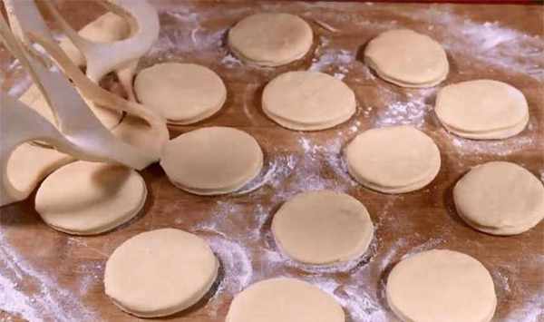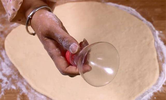 5.用这个模具把擀好的面团压成和这个一样大小的小圆饼,然后把多余的面团取出来再揉一次就可以了。