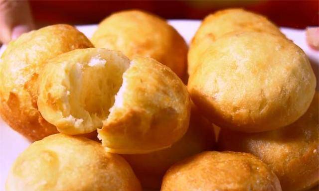 8.我们的空心甜甜圈今天就做好了。金黄色奶味十足。它看起来很好吃。打开一看,里面是空心的。喜欢的朋友不妨在家尝试一下。