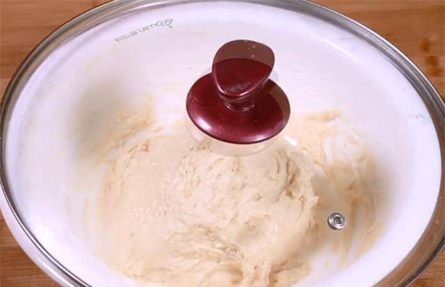 2.将温牛奶倒入盆中,大约3分钟。35度,然后加2勺糖,平时喜欢吃甜的可以多加,3g酵母粉,150g面粉,用筷子搅拌均匀,温牛奶加奶酵母粉发酵会比较快,然后加一半盐一茶匙,食用油30克,再加入少许面粉搅拌。如果觉得太稀,可以加入适量的面粉统一一下。这里大家一定要注意,面团不能太硬,可以软一点,面团可以这样搅拌,盖上发酵至两倍大。