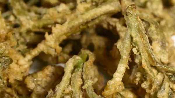 5.今天我们的香椿炒菜做好了。金黄酥脆,味道还不错。方法很简单。喜欢的朋友可以在家试试。