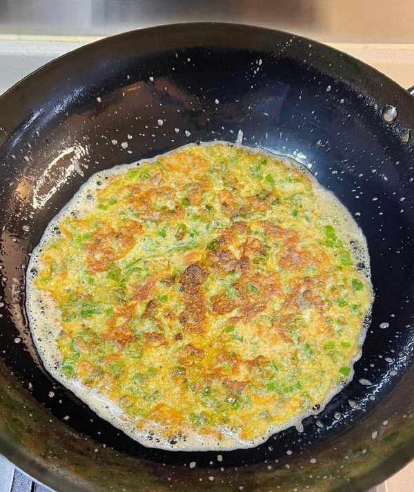 将蛋液倒入锅中后,用小火慢慢煎。如果火太大,很容易把蛋饼烧焦或者表面熟了,但里面还是液态的。因此,一定要用小火慢慢煎,这样煎蛋才能均匀受煎。