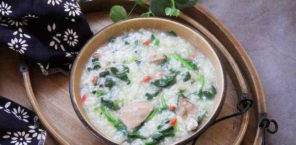 制法:将大米洗净,用水浸泡30分钟;将猪肝切成薄片,用冷水泡去血水;菠菜洗净切碎备用;将泡好的米放入锅中,加水煮成粥;加入猪肝和菠菜,翻炒至猪肝全熟,加少许盐调味,即可熄火。