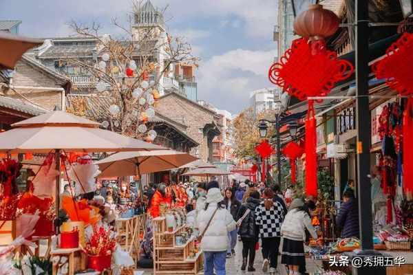 春节临近,南屏街人流熙攘,很是热闹。音乐节、颂福墙、美食广场、新春市集、春城花街……整个南屏都洋溢着新年的喜悦。