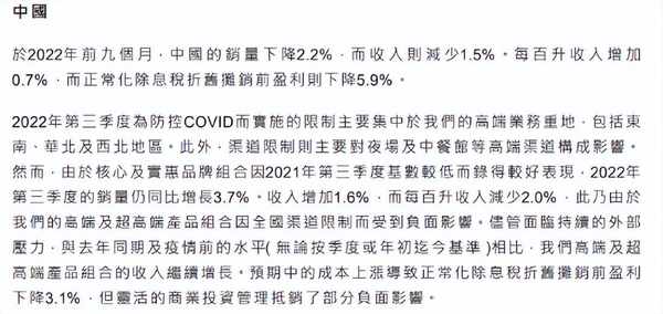 2022年上半年百威每百升收入增长4.2%,前三季度每百升收入增长2.9%。在2022年第三季度业绩说明会上,百威亚太CEO杨克表示,将在11月起计划在中国市场上调高端和超高端产品的价格。提价似乎成了百威维持营收的“遮羞布”,而公司在财报中将这种做法称为“收入管理策略”。