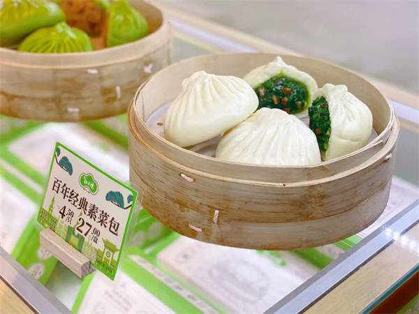 “脸面”变年轻了,但“内含”还是挺传统。松月楼的招牌素菜包依然是明星主打产品。此外,还新增了陈皮豆沙包、八宝辣酱包、原味豆皮包、鹿茸菌菇包等新品种。