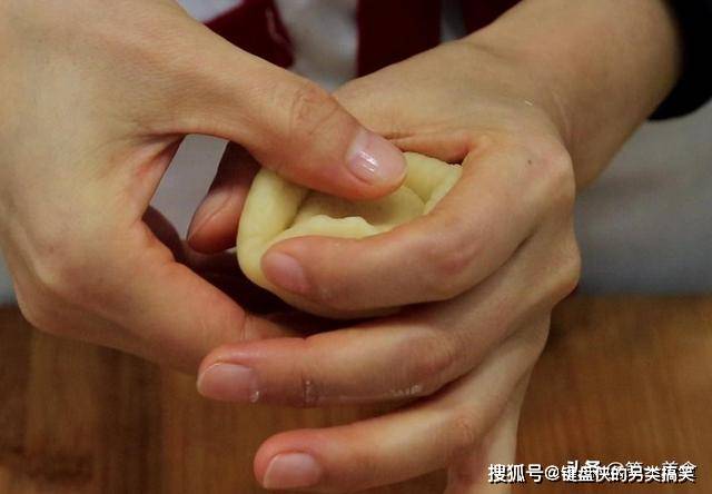 ,收好口不要露出奶黄酥,包好以后在手中团一团,