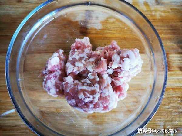 1、首先我们准备食材,肥瘦相间的猪肉洗净,之后剁成碎末,放入小碗中。