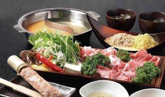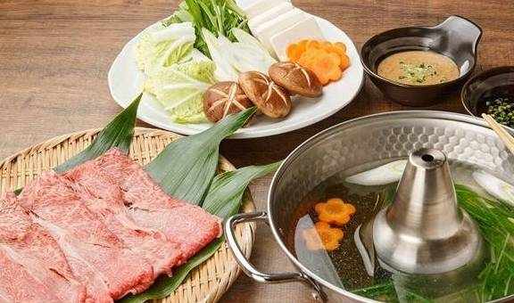 涮涮锅是一种有肉和蔬菜的火锅料理。火锅中的汤底通常是昆布高汤(昆布だし)。「涮涮锅」的名字是源自筷子在锅里搅拌肉时的声音。在吃涮涮锅的时候,你可以将食物沾上柑橘醋(ポン酢)或芝麻酱(ごまだれ)。将薄切牛肉放入沸腾的涮涮锅中,可以去除肉上多余的油分。除了牛肉,还可以使用鱼(ブリ)、鸡肉、猪肉或鱼肉等。