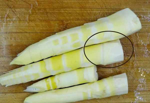 首先看下春笋根部的颜色,一般嫩笋根部是象牙白色,而老笋根部偏黄。需要大家注意的是,不能靠看春笋外壳的颜色来判断春笋的老嫩。有些春笋的表皮颜色发黑,是太阳光照较强造成的,并不能代表它是老的。