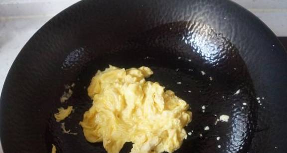 3.热锅热油,倒入蛋液炒熟,盛出备用。