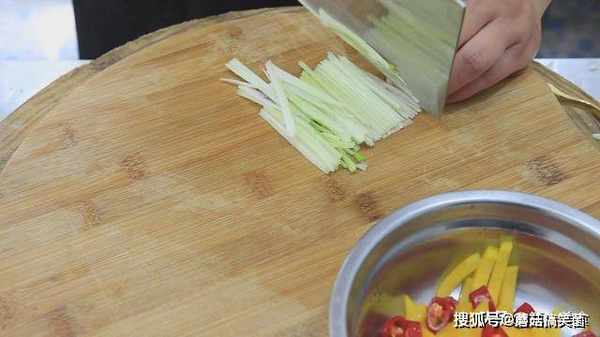 大葱白一小段,破开切成葱丝。