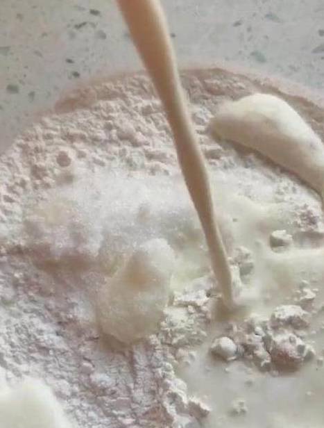步骤:1、我弄了半碗糯米粉,然后放入了些白糖,玉米淀粉,色拉油,然后倒入了一袋牛奶顺着一个方向搅拌