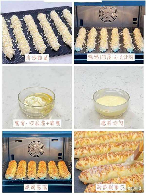 ·表面挤上沙拉酱,烘烤190度16-18分钟至金黄色