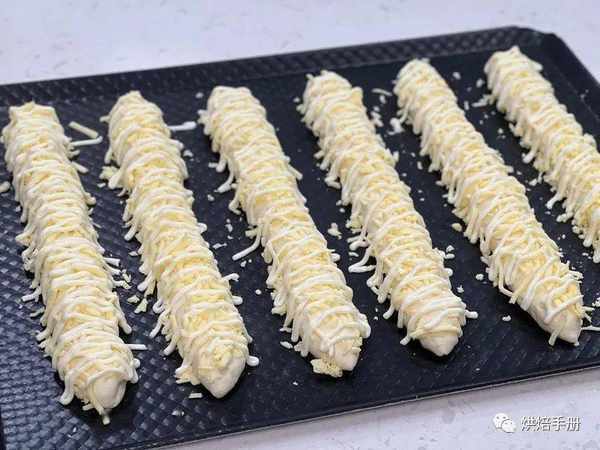 ❤咸香中又带一丝丝甜味的脆脆的外皮,配上松软拉丝的面包体,是小孩子会喜欢的口味~自己做用料十足,多多的芝士和蜜酱,吃下去一口接一口停不下来~简单的长条塑形和装饰,烘焙小白也能轻松做起来~