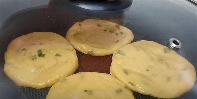 9、两分钟后重复,盖上盖子再煮两分钟,如此反复,直到两面金黄酥脆,用锅铲掰开,蛋糕很快就膨胀起来,证明就可以了。煮熟了。