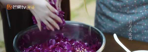 剧中,神仙姐姐刘亦菲跟着房东阿婆一起做鲜花饼,那一盆漂亮的玫瑰花馅儿,当真是看着就很有食欲。尤其是在神仙姐姐的妙手揉捏之下,看着就更美味了。