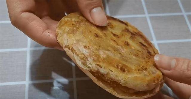 11、将平底锅预热,倒入适量食用油。油热后,将饼放入锅中,盖上锅盖蒸两分钟,2分钟后翻面,盖上锅盖再蒸两分钟,再翻面烤至两面都是金黄色。酥脆,蛋糕用抹刀一压就烤好,立马回弹不塌陷。