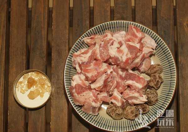 2. 将冲洗干净的排骨沥干水分,准备好话梅,还有冰糖。