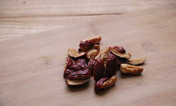 红枣用温水搓洗干净,用剪刀从中间剪开,去掉枣核,剪成小块备用。