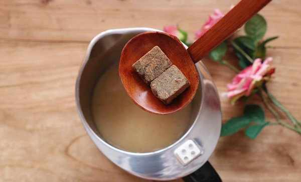 红枣小米糊打好后,趁热加入2小块红糖,搅动一下,红糖完全融化就可以饮用了。加入红糖让这道小米糊成为了一道春季补气血的首选饮品,但前提是您要用真红糖。