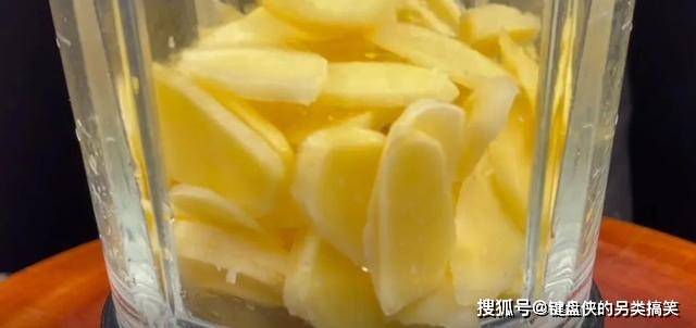 2、随后放进搅拌机,加半碗清水,打成姜泥。