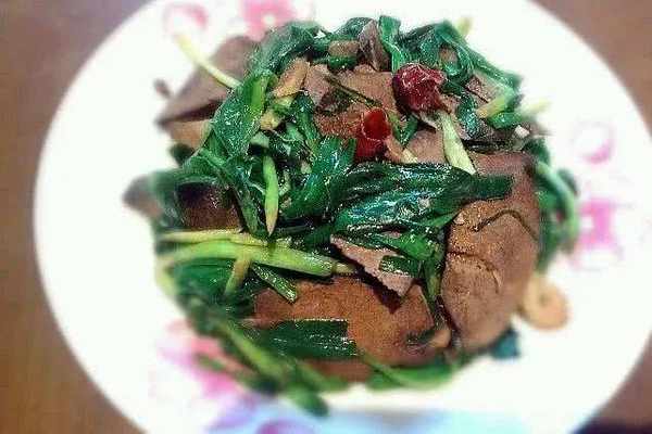猪肝适量、韭菜适量、宴友食用油、豆芽适量、生姜适量、红椒适量、盐适量、料酒适量、白胡椒适量、老抽适量、鸡精适量、生粉适量、生抽适量