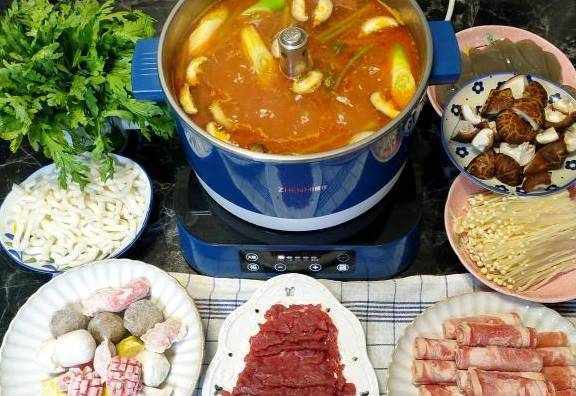 文中的番茄锅底我是按我家的口味调制的,由于天气冷,在炒制锅底的时候添加了一勺黄椒酱,味道有点点辣味,吃着蛮好,如果不吃辣的朋友,倒是可以不添加哦。至于火锅的配菜根据各家喜好配置吧。还有这款番茄锅底是可以直接喝的哦,特别是喜欢涮素菜的朋友,一定要试试哦。难道涮荤菜,汤就不能喝了么?当然不是,再没有涮肉之前是可以的,涮了荤菜后,嘌呤增加,不适合喝而已。