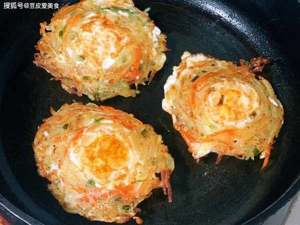 材料:鸡蛋3个,土豆1个,胡萝卜小半根,黑胡椒适量,淀粉适量,盐适量。