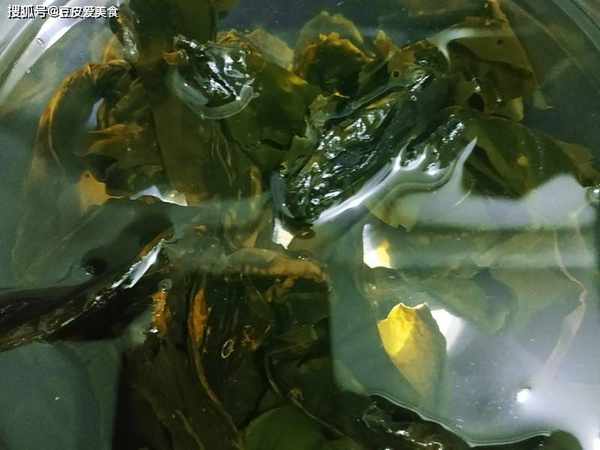 3、海带浸泡半个小时以后,再冲洗3遍,切断。