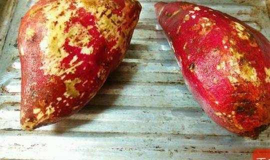 8.红薯已经烤了45分钟,用手捏一下中间特别的软,边上能看到流出来很多的糖汁。