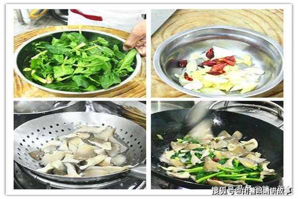 锅内烧油,油烧热以后倒入葱姜蒜和干辣椒一起翻炒出香味,辣椒微微变色以后倒入菠菜开大火翻炒,火小的话菠菜容易出水,炒至菠菜塌软倒入平菇翻炒均匀后调味,加入蚝油5克、食盐2克、鸡粉2克、胡椒粉1克翻炒化开调料,再勾入水淀粉让料汁更好的吸附在平菇上面,大火翻匀后即可装盘上桌。