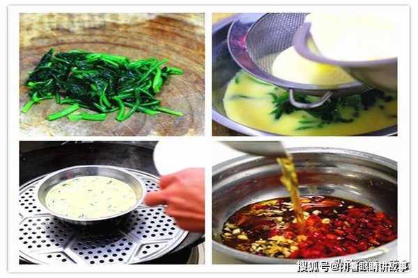 准备6个鸡蛋,把蛋清和蛋黄分开,分别搅拌打散成蛋液,然后把菠菜倒进蛋清里面拌匀。准备一个托盘,均匀刷上油方便脱模,把菠菜蛋清液倒进去,在上下震动几下 排出里面的空气。开水上锅,旺火先蒸3分钟。