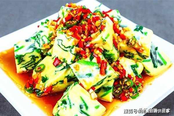 10分钟以后把蒸好的菠菜蛋羹取出来,切成块放入盘中,浇上料汁、美味即成。