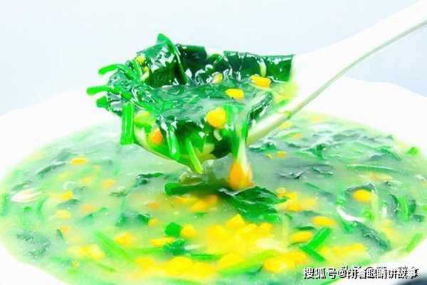 锅内烧少许油,油热以后倒入葱姜和胡萝卜粒炒出香味,加入适量清水、清水的量根据自己家有几口人来添加。然后加入食盐2克,煮至汤汁沸腾以后放入玉米粒,用勺子搅拌玉米粒并沿锅边打去煮出的浮沫。差不多煮四五分钟,玉米粒断生以后加入鸡粉2克、勾入适量的水淀粉调成自己喜欢的粘稠度,然后放入菠菜,撒上一把虾米,继续搅匀就可以出锅了。