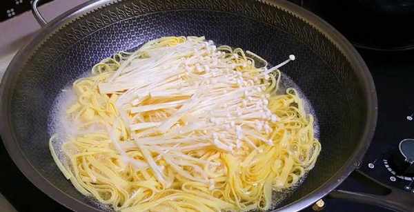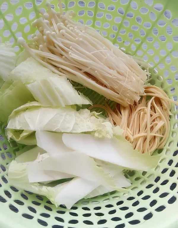 烧开水锅,将金针菇和豆腐皮放进去煮两分钟即可
