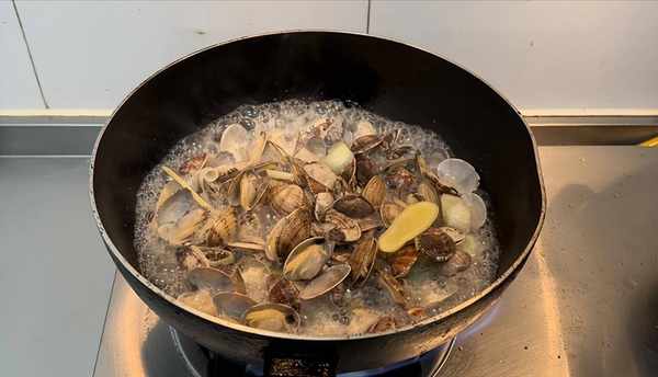 也就三,五分钟吧,等花蛤都开口了就OK了,喜欢吃辣的可以多放点辣椒,吃着过瘾。