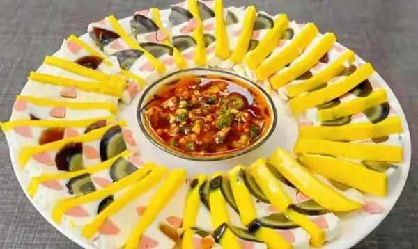 1、准备老南瓜,去掉外皮,对半切开,刮掉瓜瓤,切成薄三角的形状,注意是一个倒三角,一个正三角。南瓜尽量切的尖一点,放在盘子里铺好。