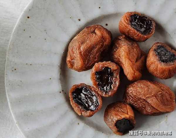 众所周知很多果脯腌制过程中都会加盐,激发果子的味道。梅子也不例外,酸梅干经过盐渍后,酸味有所降低,在里面夹入晒至七成的葡萄,甜、酸、咸,三种味道更好中和,开胃又解腻。