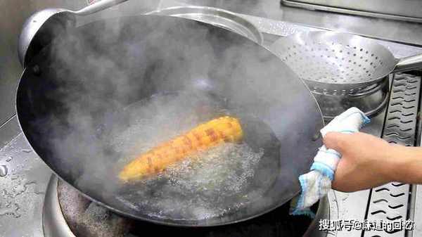 3.玉米粒已经煮熟了,炸的时候时间不用太久,外面炸成金黄色即可捞出。