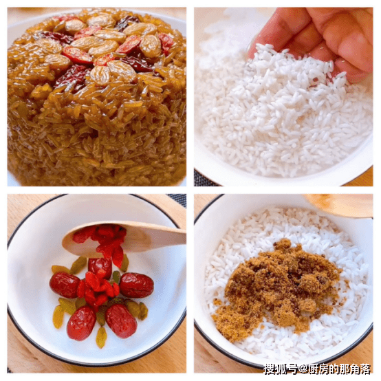 食材:糯米、红糖、红枣、枸杞、葡萄干