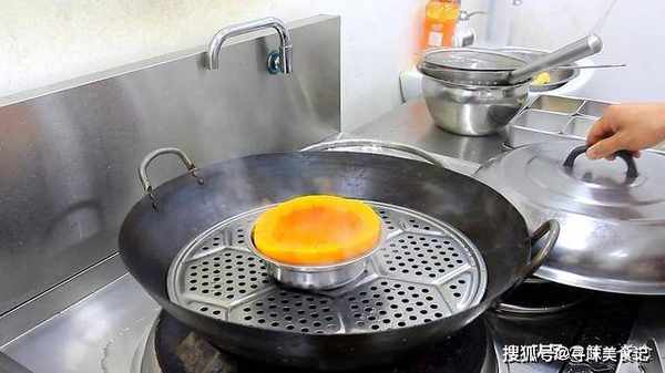 2.锅内烧水,放上蓖子,把南瓜放在篦子上面蒸十分钟左右,蒸锅密封不严的话,要适当增加蒸制的时间。