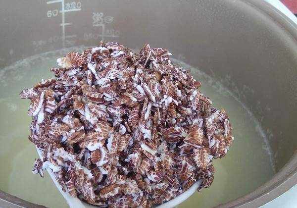 5.小米煲10分钟后血燕麦入锅同煲